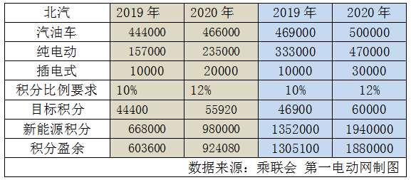 北汽集團(tuán)規(guī)劃指出,到2020年自主品牌銷量超過100萬(wàn)輛,其中新能源車目標(biāo)50萬(wàn)輛。如果按照從2016年到2020年每年以一定增速穩(wěn)步遞進(jìn),那么2019-2020年北汽將產(chǎn)生大量新能源正積分。