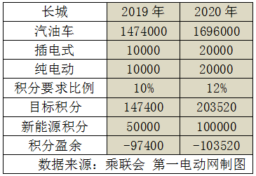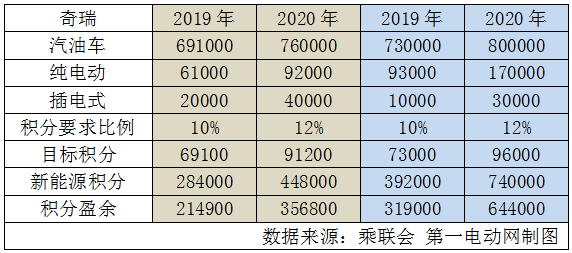 根據(jù)奇瑞規(guī)劃,2020年沖擊100萬(wàn)銷量,其中新能源車20萬(wàn)。如果按照從2016年到2020年每年以一定增速穩(wěn)步遞進(jìn),那么2019-2020年奇瑞將產(chǎn)生大量新能源正積分。