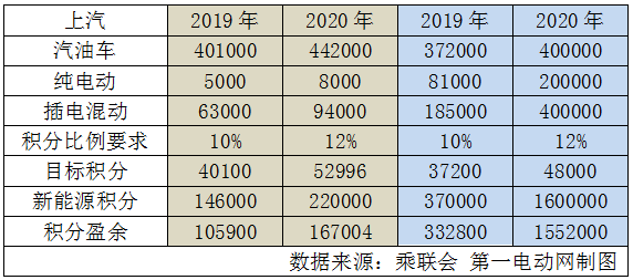 根據(jù)上汽規(guī)劃,2020年乘用車銷量為100萬(wàn),其中新能源車60萬(wàn)輛。如果按照從2016年到2020年每年以一定增速穩(wěn)步遞進(jìn),那么2019-2020年上汽將產(chǎn)生大量新能源正積分。
