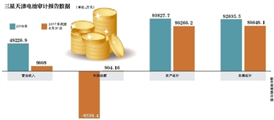 三星天津目前已出現(xiàn)資不抵債的情況。2016年,三星天津電池總資產(chǎn)9.38億元,全年負(fù)債卻達(dá)到了9.26億元;截至今年8月31日,其總資產(chǎn)為8.03億元,總負(fù)債高達(dá)8.06億元,所有者權(quán)益負(fù)381.95萬元。