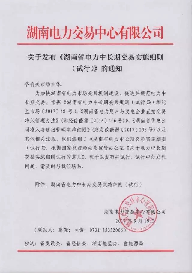 中國儲能網(wǎng)訊:9月19日湖南電力交易中心正式發(fā)布了《湖南省電力中長期交易實施細則(試行)》,通知原文如下: