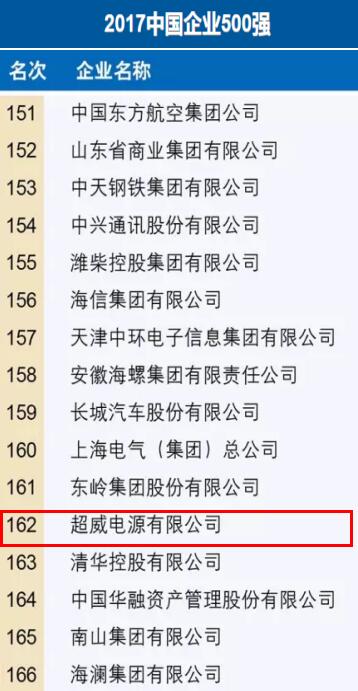 超威集團(tuán)位列中國企業(yè)500強(qiáng)第162位