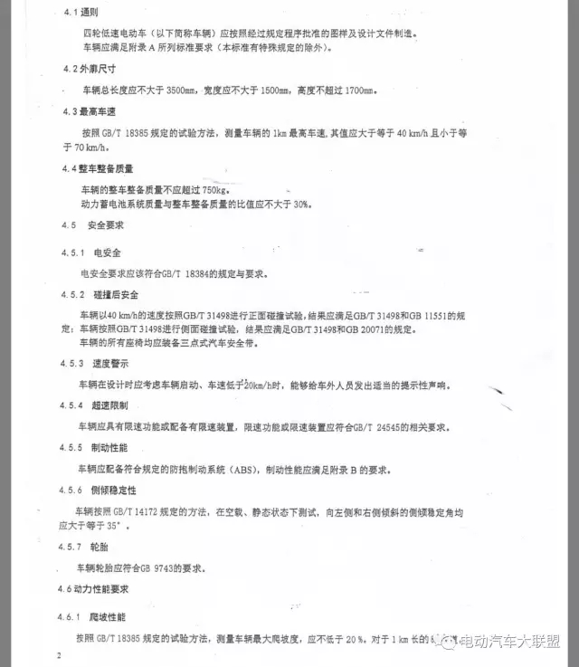 低速電動(dòng)車(chē)國(guó)標(biāo)(草案)