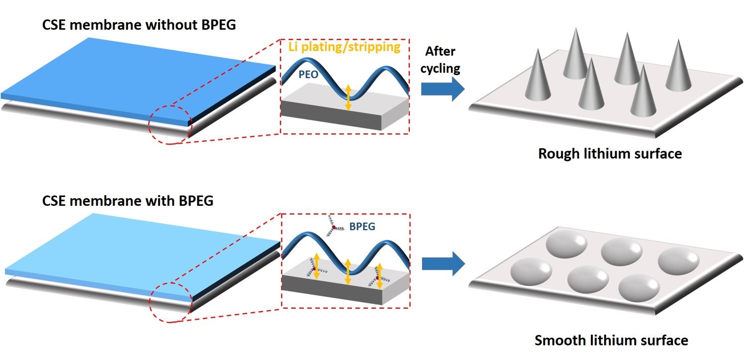圖1 BPEG對(duì)于鋰的沉積/脫出的影響示意圖