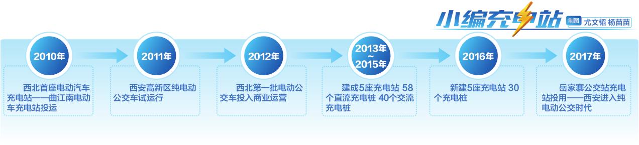 2010年7月14日,西北首座電動(dòng)汽車(chē)充電站———曲江南電動(dòng)車(chē)充電站順利建成投運(yùn)。充電站采用世界領(lǐng)先技術(shù),采用國(guó)家電網(wǎng)CEV1000智能充電運(yùn)行管理系統(tǒng),具有充電 數(shù)據(jù)采集和處理、充電機(jī)控制調(diào)節(jié)、安全系統(tǒng)聯(lián)動(dòng)、事件報(bào)警、充電事件記錄,GPS對(duì)時(shí)等功能,滿足充電站智能運(yùn)行管理要求。2012年8月2日,西北地區(qū)第一批電動(dòng)公交車(chē)投入商業(yè)化運(yùn)營(yíng)。2017年1月4日,由國(guó)網(wǎng)西安供電公司承擔(dān)的岳家寨公交站充電站項(xiàng)目投入使用。該項(xiàng)目可以同時(shí)為100輛純電動(dòng)公交車(chē)不間斷充電,每臺(tái)電動(dòng)車(chē)只需充電兩個(gè)半小時(shí),就能行駛300公里,一天只需充電一次,就能完成全天行駛路程。該項(xiàng)目的投運(yùn),標(biāo)志著西安市全面進(jìn)入純電動(dòng)公交時(shí)代。
