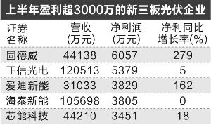 據(jù)統(tǒng)計(jì),22家新三板光伏企業(yè)上半年盈利實(shí)現(xiàn)同比增長,占已披露半年報(bào)光伏企業(yè)的58%,11家企業(yè)凈利潤增幅超過1倍。