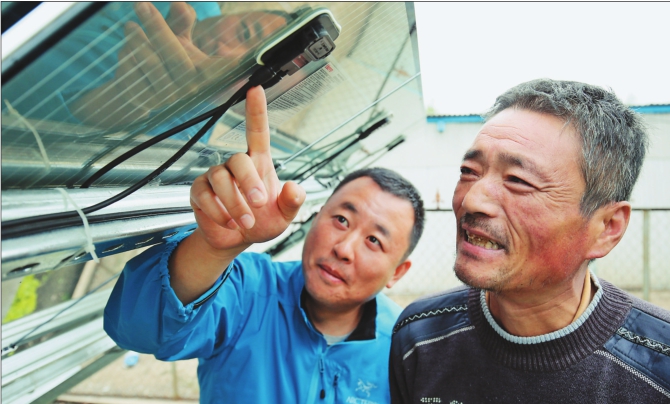 50歲的劉安奎(右)是光伏扶貧項(xiàng)目的受益者。
