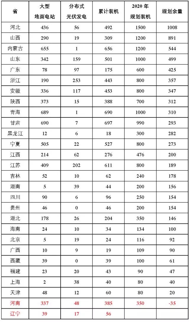 1)即使不算遼寧、重慶、云南、新疆4省,其他省份的裝機(jī)量已經(jīng)達(dá)到144.65GW,算上4省目前的裝機(jī)量已經(jīng)達(dá)到156GW!