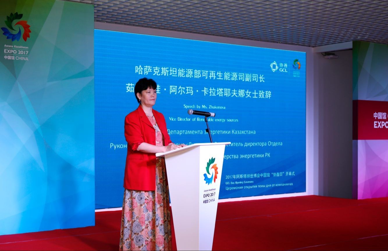 在協鑫日活動中,哈薩克斯坦能源部可再生能源司副司長茹科諾娃女士表示,中國的能源發(fā)展在全球都處于領先地位,而哈薩克斯坦的可再生能源仍處在起始階段,非常愿意向中國學習先進經驗,希望能與中國的政府、企業(yè)展開合作,加快可再生能源發(fā)展。中國館館長舒寰女士表達了希望協鑫集團借助世博會與哈薩克斯坦等“一帶一路”沿線國家開展能源領域合作,并取得豐碩成果的祝愿。