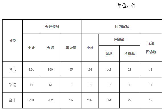 表三:2017年1-6月投訴舉報受理、辦結(jié)及回訪情況