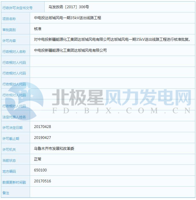 關(guān)于中電投達(dá)坂城風(fēng)電一期35kV送出線(xiàn)路工程申請(qǐng)核準(zhǔn)的批復(fù)