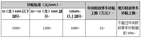 新能源貨車和專用車以提供驅(qū)動動力的動力電池總儲電量為依據(jù),采取分段超額累退方式給予補(bǔ)貼