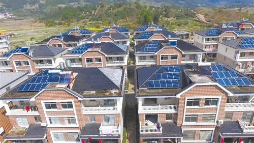房頂上裝太陽(yáng)能光伏板,村民曬著太陽(yáng)也能掙錢