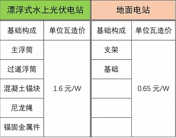 表:漂浮式與地面電站光伏陣列基礎(chǔ)投資指標(biāo)對(duì)比表