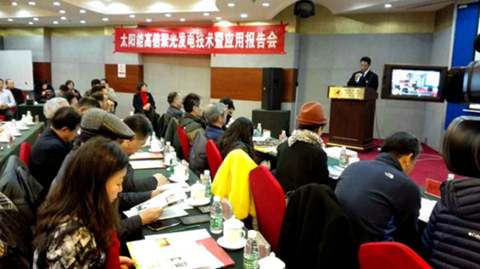 “太陽能高倍聚光發(fā)電技術(shù)專項(xiàng)委員會(huì)”主任委員、太陽能高倍聚光發(fā)電技術(shù)科學(xué)家楊向民同志,向在會(huì)專家做了“太陽能高倍聚光發(fā)電技術(shù)暨應(yīng)用”技術(shù)報(bào)告。