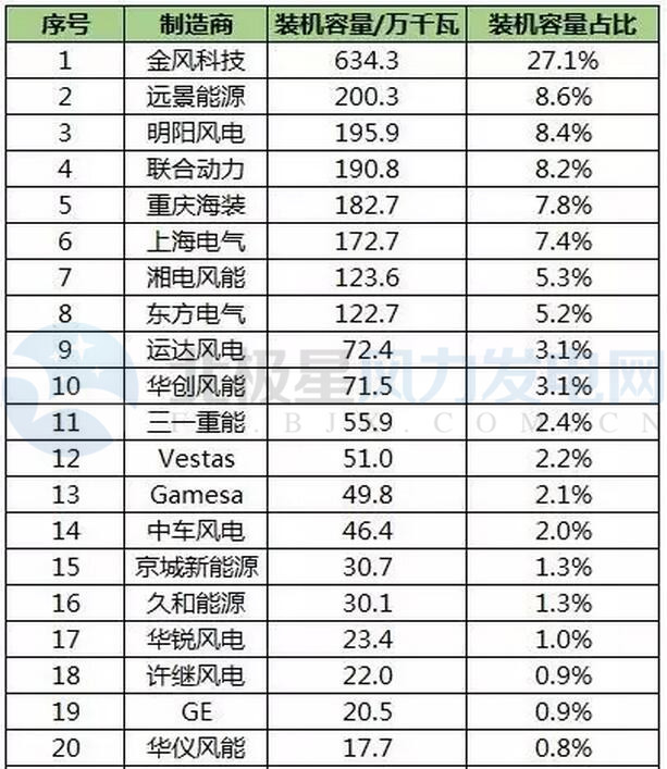 中國儲能網(wǎng)訊:中國風(fēng)能協(xié)會昨日發(fā)布《2016年中國風(fēng)電裝機(jī)容量簡報》,北極星風(fēng)力發(fā)電網(wǎng)獲得授權(quán)發(fā)布。行業(yè)頗為關(guān)注的整機(jī)商排名前十位為:金風(fēng)科技、遠(yuǎn)景能源、明陽風(fēng)電、聯(lián)合動力、海裝風(fēng)電、上海電氣、湘電風(fēng)能、東方風(fēng)電、運(yùn)達(dá)風(fēng)電、華創(chuàng)風(fēng)能。遠(yuǎn)景能源、明陽風(fēng)電、聯(lián)合動力座次發(fā)生變動,近期頗受關(guān)注的華創(chuàng)風(fēng)能時隔五年再次殺入前十位。以下為整機(jī)商排名: