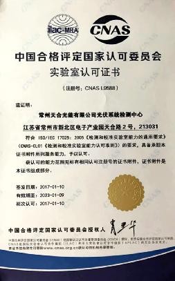 “我們非常高興地宣布天合光能光伏系統(tǒng)檢測(cè)中心順利通過(guò)CNAS實(shí)驗(yàn)室認(rèn)可審查,獲得由中國(guó)合格評(píng)定國(guó)家認(rèn)可委員會(huì)頒發(fā)的實(shí)驗(yàn)室認(rèn)可證書(shū)?!碧旌瞎饽芟到y(tǒng)檢測(cè)中心主任全鵬先生說(shuō)道,“隨著分布式系統(tǒng)的市場(chǎng)發(fā)展,光伏系統(tǒng)端質(zhì)量越來(lái)越受到業(yè)主的關(guān)注,我們將進(jìn)一步增強(qiáng)系統(tǒng)檢測(cè)中心的對(duì)外服務(wù)能力,為行業(yè)系統(tǒng)質(zhì)量提升做出貢獻(xiàn)?!?
