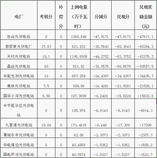 2016年12月份陜西電網(wǎng)“兩個細(xì)則”考核補(bǔ)償結(jié)果(光伏)