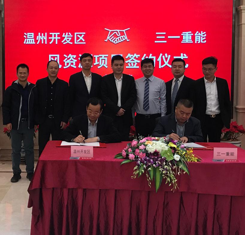 三一集團(tuán)董事、三一重能副董事長毛中吾與溫州經(jīng)濟(jì)技術(shù)開發(fā)區(qū)管委會主任、黨委書記徐蓬勃參與簽約儀式。徐書記非??春么舜卧谛履茉搭I(lǐng)域的合作,雙方后期還將在產(chǎn)業(yè)投資、清潔能源產(chǎn)業(yè)基金、建筑工業(yè)化(PC)領(lǐng)域開展更為深遠(yuǎn)的合作。