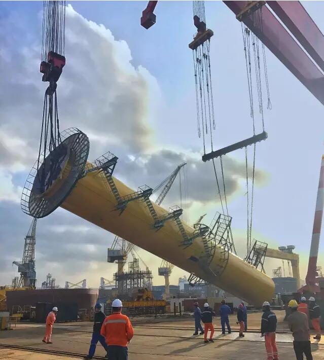 近日,三航新能源公司成功將“三航工5”半潛駁改造成為坐底式風(fēng)電安裝船,該船型長100m,型寬40m,型深7m,空載吃水2.8m,作業(yè)平臺面距舉升甲板面高19m,平臺面有效作業(yè)面積3000m2,在船艉安設(shè)1臺起吊力320噸全回旋轉(zhuǎn)吊機,距水面最大吊高125m,就地抗風(fēng)等級10級,可在水深3m至22m海域坐底進行8MW以下的風(fēng)機分體安裝,是國內(nèi)首條半潛式坐底風(fēng)電安裝船。該船是新能源公司繼擁有“三航風(fēng)范號”、“三航風(fēng)華號”后,又添海上風(fēng)電安裝新利器,極大提高了新能源公司海上風(fēng)電施工能力。目前,新能源公司是國內(nèi)唯一同時擁有整體吊裝、分體安裝船機設(shè)備和安裝能力的施工團隊,通過不斷的實踐總結(jié),技術(shù)創(chuàng)新,設(shè)備改造,體系完善,新能源公司將繼續(xù)在專業(yè)化海上風(fēng)電施工建設(shè)道路上砥礪前行,為國家海上風(fēng)電事業(yè)不斷譜寫新華章。