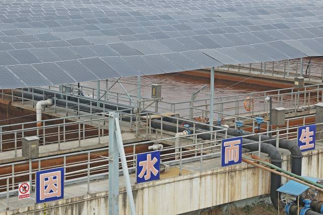 該項(xiàng)目在國內(nèi)首創(chuàng)“污水處理廠+魚腹式光伏支架系統(tǒng)”的模式,解決了“污水處理廠跨度空間大和光伏電站融合難”的問題。作為傳統(tǒng)“耗能大戶”的污水處理廠,通過建設(shè)分布式光伏電站完成電量自發(fā)自用,實(shí)現(xiàn)經(jīng)濟(jì)效益和環(huán)境效益的雙贏。將光伏電站建設(shè)在污水處理池上方,既不占用額外土地,也不影響污水處理廠的正常運(yùn)營。同時,與傳統(tǒng)鋼架結(jié)構(gòu)方案相比,魚腹式光伏支架結(jié)構(gòu)優(yōu)美、用鋼量少,承重強(qiáng),成本低,能更充分利用污水處理廠空間。