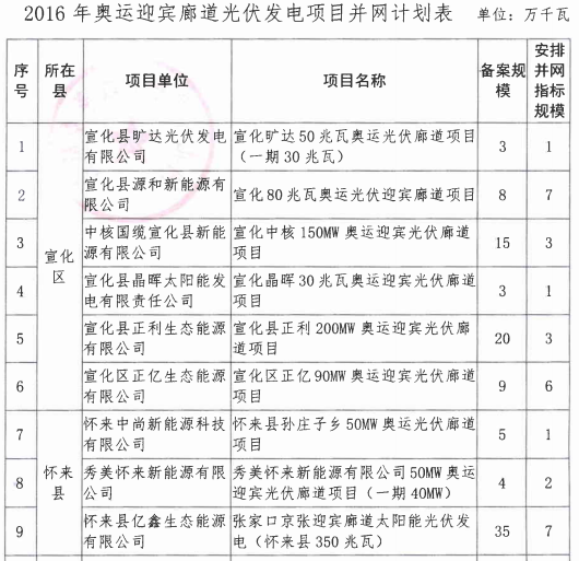 按照國家能源局《關(guān)于下達2016年光伏發(fā)電建設(shè)實施方案的通知》(國能新能〔2016〕166號)要求,為把奧運迎賓廊道光伏發(fā)電項目建設(shè)成高標準、高質(zhì)量示范工程,經(jīng)張家口市發(fā)展改革委申報、水電水利規(guī)劃設(shè)計總院評審和網(wǎng)上公示,并報經(jīng)國家能源局同意,現(xiàn)將2016年奧運迎賓廊道光伏發(fā)電項目并網(wǎng)計劃予以下達,并將有關(guān)事項通知如下: