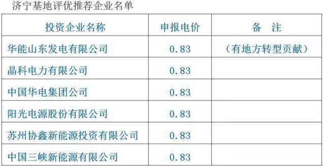 本次評優(yōu)本著公開、公平、公正的原則進行,經(jīng)過報名、評優(yōu)程序,推薦6家企業(yè)作為濟寧采煤沉陷區(qū)光伏領(lǐng)跑技術(shù)基地2016年項目投資商,現(xiàn)將評優(yōu)推薦企業(yè)按順序公示如下。