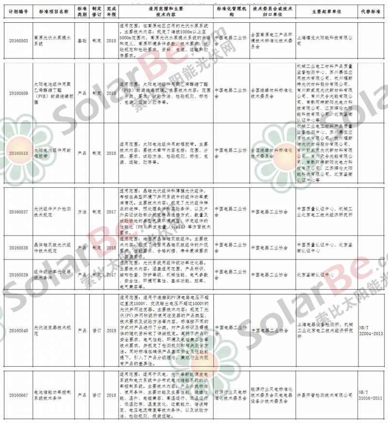2016年能源領(lǐng)域行業(yè)標準制(修)訂計劃項目匯總表【光伏】
