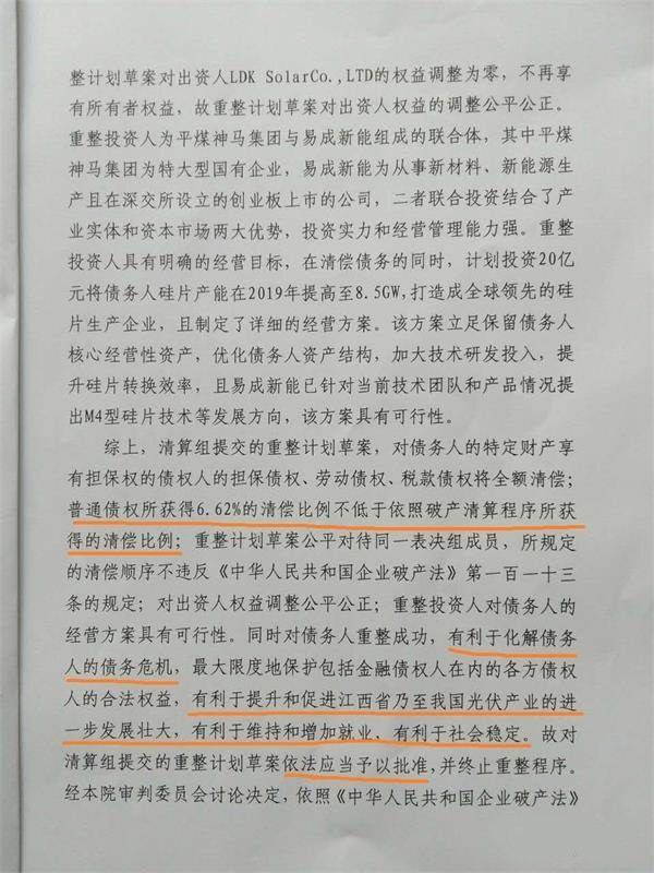 10月9日,在債權(quán)銀行兩次對(duì)重整方案不滿接連投出反對(duì)票之后,江西賽維重整方案被強(qiáng)裁。按照企業(yè)破產(chǎn)法相關(guān)條款,經(jīng)法院裁定批準(zhǔn)的重整計(jì)劃,對(duì)債務(wù)人和全體債權(quán)人均有約束力,這意味著債權(quán)銀行即使不滿,也只得乖乖接受這個(gè)無(wú)奈的結(jié)果。