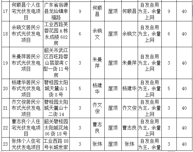 一、為進一步推進我市分布式光伏發(fā)電應(yīng)用,同意你局報來的韶關(guān)市2016年度(第三批)個人住宅分布式光伏發(fā)電項目備案。本次備案個人住宅分布式光伏發(fā)電項目42項,合計裝機容量241.2千瓦(詳見附件),納入我市2016年度分布式光伏發(fā)電新增建設(shè)規(guī)模。