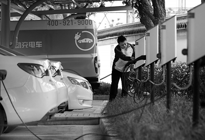 中國(guó)儲(chǔ)能網(wǎng)訊:5月14日,市民在充電站內(nèi)為新能源汽車充電。當(dāng)日,上海首座完全向市民免費(fèi)開(kāi)放的公益性新能源汽車充電站暨光伏發(fā)電車棚,在位于上海嘉定區(qū)的萬(wàn)佛寺山門前廣場(chǎng)正式落成。凡駕駛新能源汽車的市民,可在此享受免費(fèi)停車充電服務(wù)。