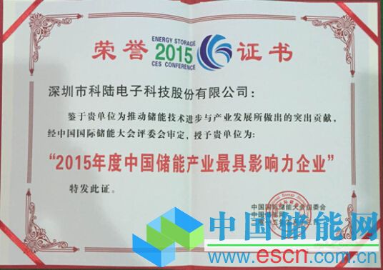 2. 深圳市科陸電子科技股份有限公司榮獲“2015中國儲能產(chǎn)業(yè)最具影響力企業(yè)”