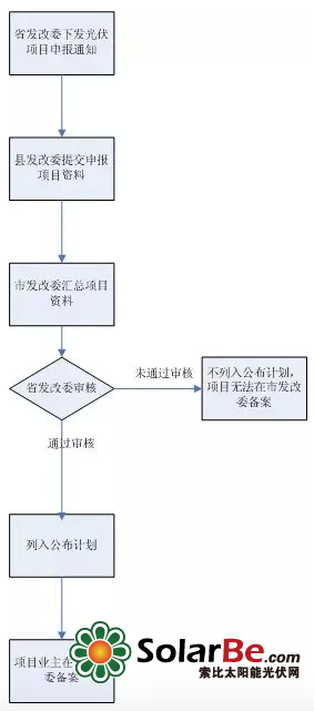 中國儲能網(wǎng)訊:河北省光伏項目審批權(quán)已下發(fā)到市一級,參考2014年申報流程以及當(dāng)?shù)馗魇兄鞴懿块T的現(xiàn)行政策,其流程為: