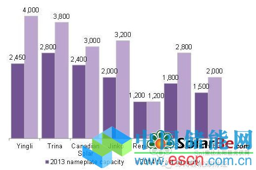 中國儲能網(wǎng)訊:2013年的光伏組件有70%來自于中國公司,而其中近半的市場份額由前七家年出貨量均超過1GW的公司占領(lǐng)。由于全球光伏市場的穩(wěn)步增長,及下游開發(fā)商對小型組件公司能否長期存活并兌現(xiàn)其對組件的質(zhì)保普遍持懷疑態(tài)度,中國幾乎所有的大型光伏組件公司在2013年都接到了超過其自身產(chǎn)能的訂單。