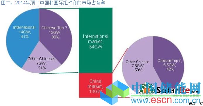 圖二:2014年預(yù)計(jì)中國和國際組件商的市場占有率來源:彭博新能源財經(jīng)