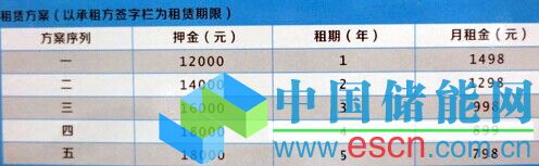 記者在該公司的租賃方案上看到,租賃方案共有5套,以年度為單位遞增,租賃時(shí)間越長需交納的押金越多,但月租金越少。