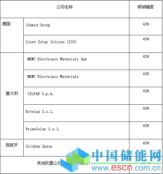 根據(jù)《反傾銷條例》的有關(guān)規(guī)定,調(diào)查機(jī)關(guān)向國務(wù)院關(guān)稅稅則委員會提出對原產(chǎn)于歐盟的進(jìn)口太陽能級多晶硅征收反傾銷稅的建議。國務(wù)院關(guān)稅稅則委員會根據(jù)調(diào)查機(jī)關(guān)的建議作出決定,自2014年5月1日起,對原產(chǎn)于歐盟的進(jìn)口太陽能級多晶硅征收反傾銷稅。對各公司征收的反傾銷稅稅率如下: