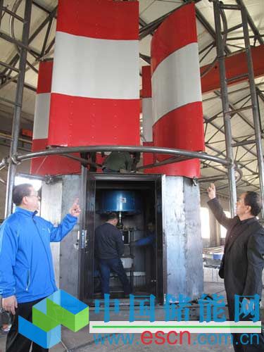15日上午8時許,首臺安裝完畢的50千瓦垂直軸微風風力發(fā)電機組樣機矗立在組裝車間,在兩臺鼓風機的吹拂下,5個藍白相間的葉片緩緩轉動起來,控制室的磁懸浮軸則快速旋轉,電腦數(shù)據(jù)紅綠燈閃爍不停。經過測試該機組完全符合專利技術標準,成功了!在現(xiàn)場的韓國BISON發(fā)電株式會社和內蒙古索力德安飾有限公司的領導和員工們歡呼雀躍。