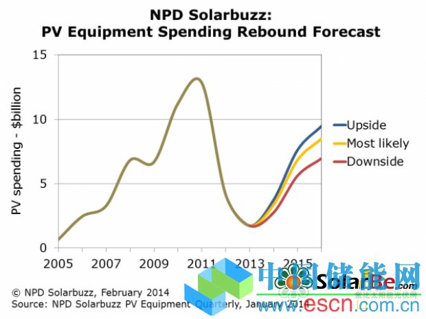 此次擴(kuò)張正在由中國、日本、美國及正在大規(guī)模新增光伏安裝項(xiàng)目兆瓦數(shù)的全球越來越多的新興市場的強(qiáng)勁需求所推動(dòng)。NPD Solarbuzz與的德意志銀行(Deutsche Bank)最近的幾份報(bào)告表明,2014年全球終端市場需求達(dá)到50GW左右,較2013年早期評估的36GW大幅提高。