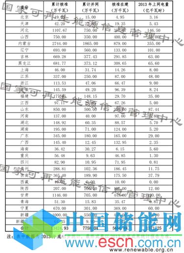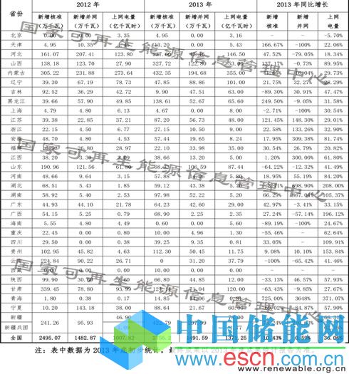 2013年度全國風(fēng)電新增核準(zhǔn)、并網(wǎng)容量匯總表