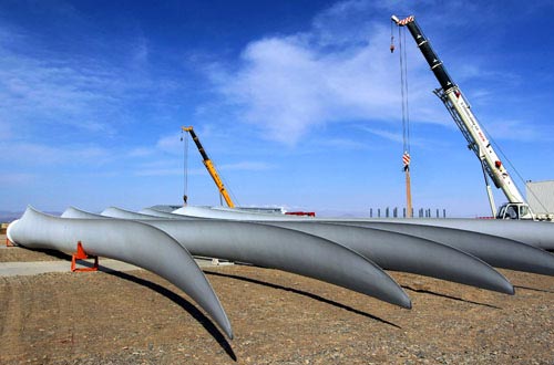 中國儲(chǔ)能網(wǎng)訊:4月24日,吊車在哈密中復(fù)聯(lián)眾風(fēng)電機(jī)組葉片生產(chǎn)基地吊運(yùn)葉片。隨著國家對(duì)新疆風(fēng)能資源的不斷開發(fā)利用,哈密風(fēng)電設(shè)備制造產(chǎn)業(yè)也得到了迅猛發(fā)展,目前金風(fēng)、北車、海裝、中復(fù)聯(lián)眾、泰勝等一大批風(fēng)電裝備制造企業(yè)建成投產(chǎn)。
