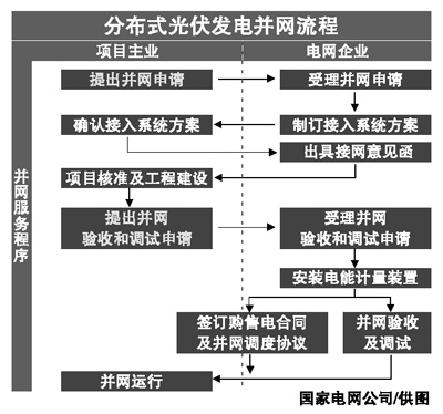 隨著分布式光伏發(fā)電并網綠色通道的建立以及一系列標準和細則的制訂,將大大優(yōu)化并網流程,簡化并網手續(xù),提升服務效率,切實提高并網服務水平。國家電網副總經濟師王相勤還表示:“國家電網為分布式光伏發(fā)電并網提供客戶服務中心、95598服務熱線、網上營業(yè)廳等多種咨詢渠道,向項目業(yè)主提供并網辦理流程說明、相關政策規(guī)定解釋、并網工作進度查詢等服務,接受項目業(yè)主投訴。”
