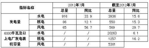 2012年7月我國可再生能源發(fā)電利用情況一覽