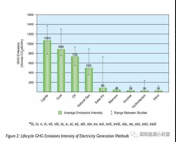 ——核電的排放強(qiáng)度中值為29克/千瓦時(shí)(最低2克/千瓦時(shí),最高130克/千瓦時(shí));