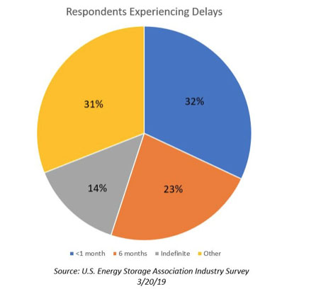 62%的受訪者表示,其開(kāi)發(fā)的儲(chǔ)能項(xiàng)目已經(jīng)延誤;而66%的受訪者表示其計(jì)劃開(kāi)發(fā)的項(xiàng)目可能出現(xiàn)延誤。