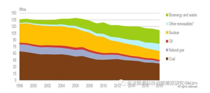 圖3 1998-2018年德國能源生產(chǎn)情況(單位:百萬噸油當量)