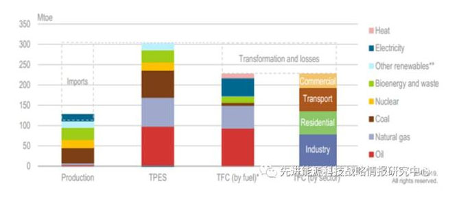 圖2 2018年德國能源供應和消費情況(單位:百萬噸油當量)