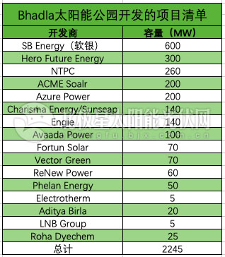 Bhadla太陽能公園開發(fā)項(xiàng)目一覽表