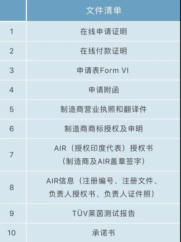 申請人必須由印度當(dāng)?shù)卮韥砩暾圕RS注冊。TüV萊茵可以提供相關(guān)協(xié)助。