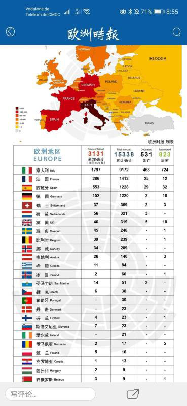 但是,新冠疫情這只“黑天鵝”在肆意“禍害”國內汽車市場、基本得以控制住后,現(xiàn)已逐步蔓延至歐洲市場。歐洲接下來的電動化之路,是否會如今年開年的國內市場“暴跌”乃至“一度停擺”?現(xiàn)實面前,讓人疑慮。以下是3月9日歐洲時報公布的歐洲諸國疫情實況: